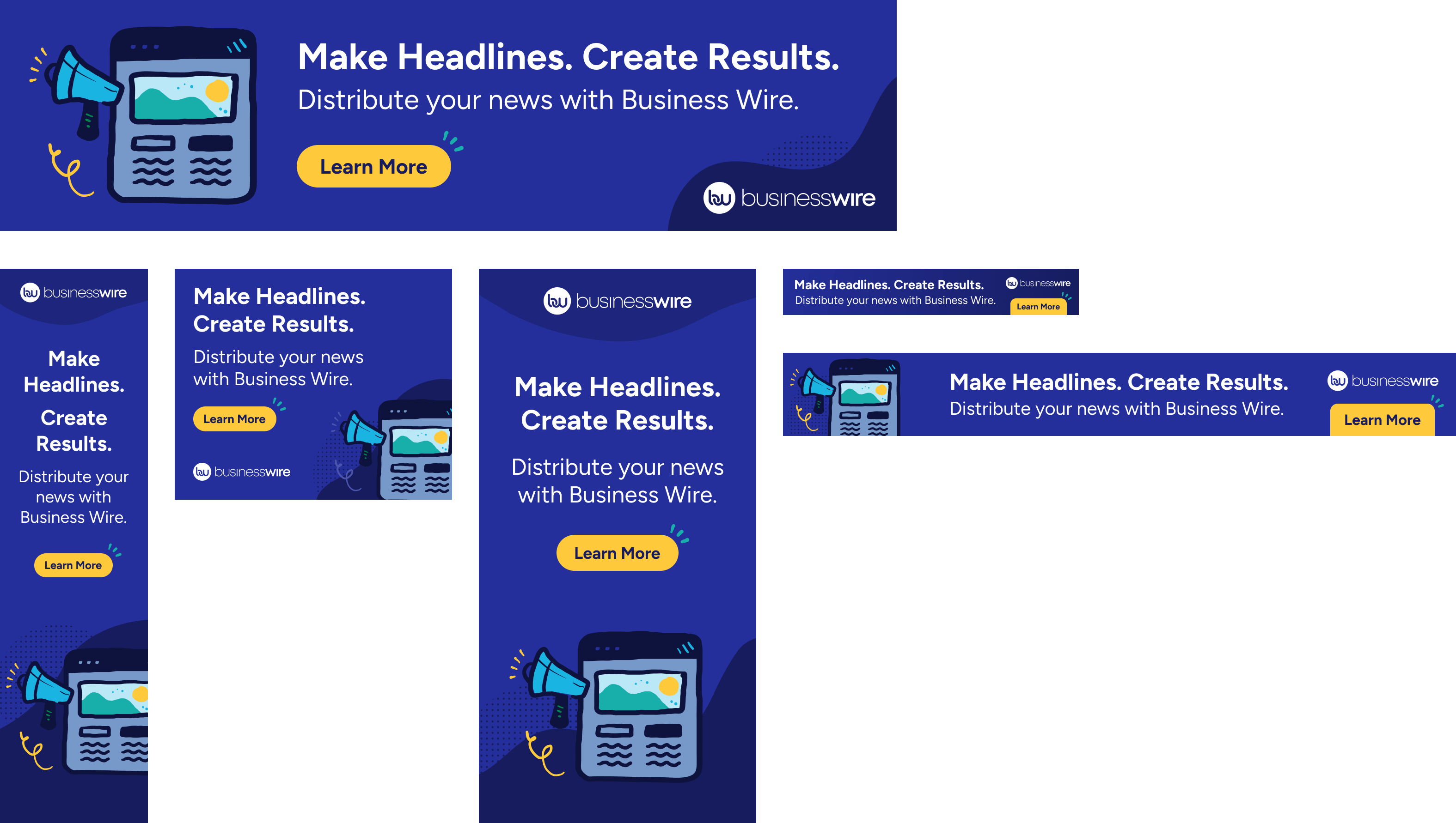 I created campaign assets to support an account-based marketing (ABM) retargeting initiative focused on driving landing page form submissions from previous website visitors. The work included A/B tested display ads in multiple sizes and copy variations, as well as LinkedIn graphics, all tailored to engage two core audiences: public relations and investor relations.